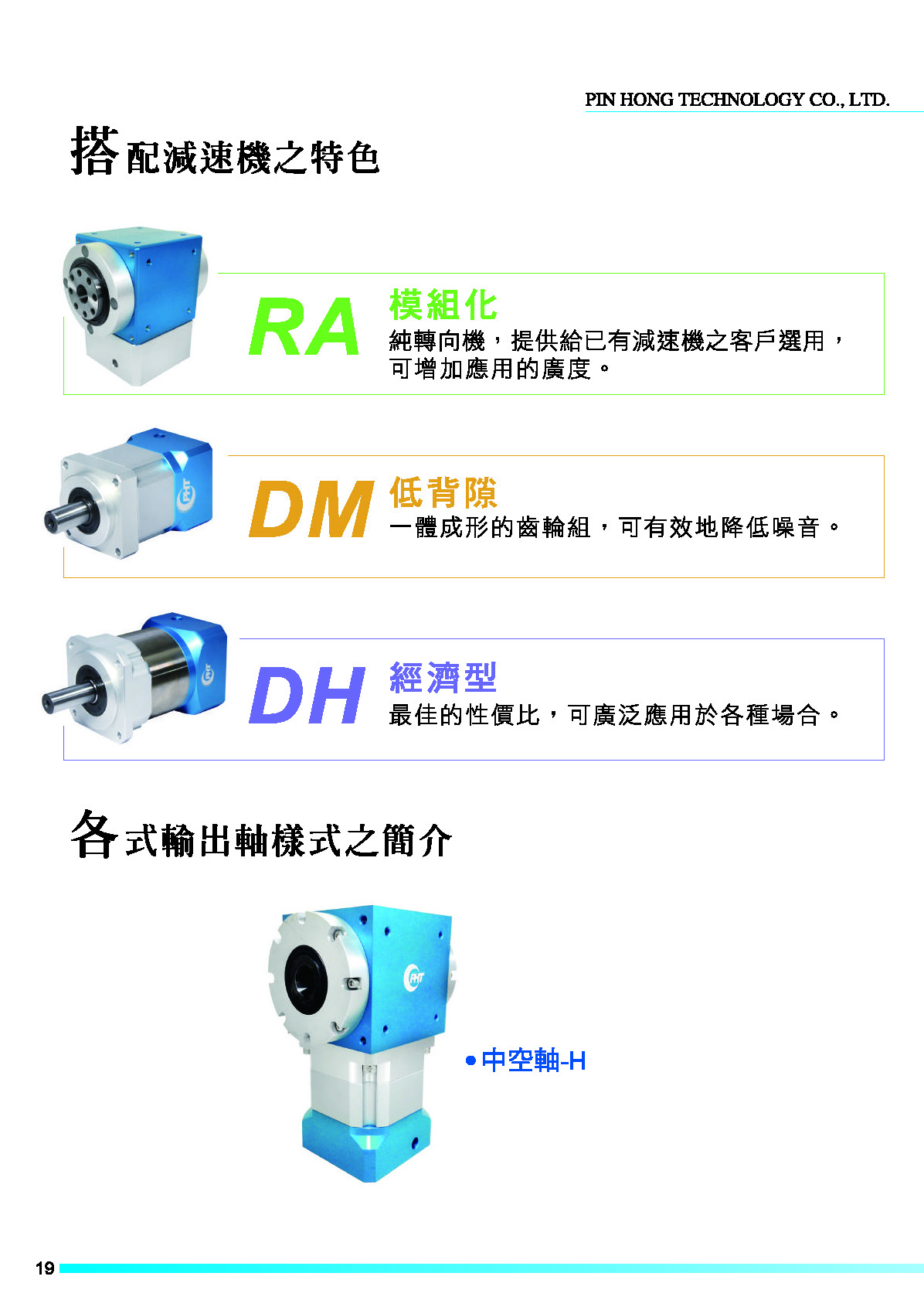 RA系列精密伺服90度轉(zhuǎn)角行星減速機(jī):? 特點(diǎn):為方形法蘭轉(zhuǎn)角式結(jié)構(gòu),具有精度高、高剛性、承載能力大、效率高、壽命長、體積輕小、外形美觀、安裝方便、可解決軸向空間限制、定位精準(zhǔn)等特點(diǎn),適用于交流伺服馬達(dá)、直流伺服馬達(dá)、步進(jìn)馬達(dá)、液壓馬達(dá)的增速與減速傳動(dòng)。適合于全球任何廠商所制造的驅(qū)動(dòng)產(chǎn)品連接,如:松下、臺(tái)達(dá)、安川、富士、三菱、三洋、西門子、施耐德、法那克、科比、科爾摩根、AMK、帕克等等。?RA系列精密伺服直角行星減速機(jī):? 分RA06,RA070,RA090,RA120,RA150直角式常用機(jī)座型號,速比:1~1000有20多種比速可選擇;分一級、二級和三級減速傳動(dòng);精度:一級傳動(dòng)精度在5-8弧分,二級傳動(dòng)精度在7-10弧分;三級傳動(dòng)精度在9-12弧分;有數(shù)百種規(guī)格。產(chǎn)品型號例如:RAM150L1-10-H-35-114.3法蘭型輸出。?應(yīng)用領(lǐng)域:? 伺服減速機(jī)可直接安裝到交流和直流伺服馬達(dá)上,廣泛應(yīng)用于精密機(jī)床、軍工設(shè)備、半導(dǎo)體設(shè)備、印刷包裝設(shè)備,激光測試設(shè)備,鋁型材設(shè)備,太陽能、工業(yè)機(jī)器人、醫(yī)療設(shè)備、精密測試儀器等高精度場合的應(yīng)用。?