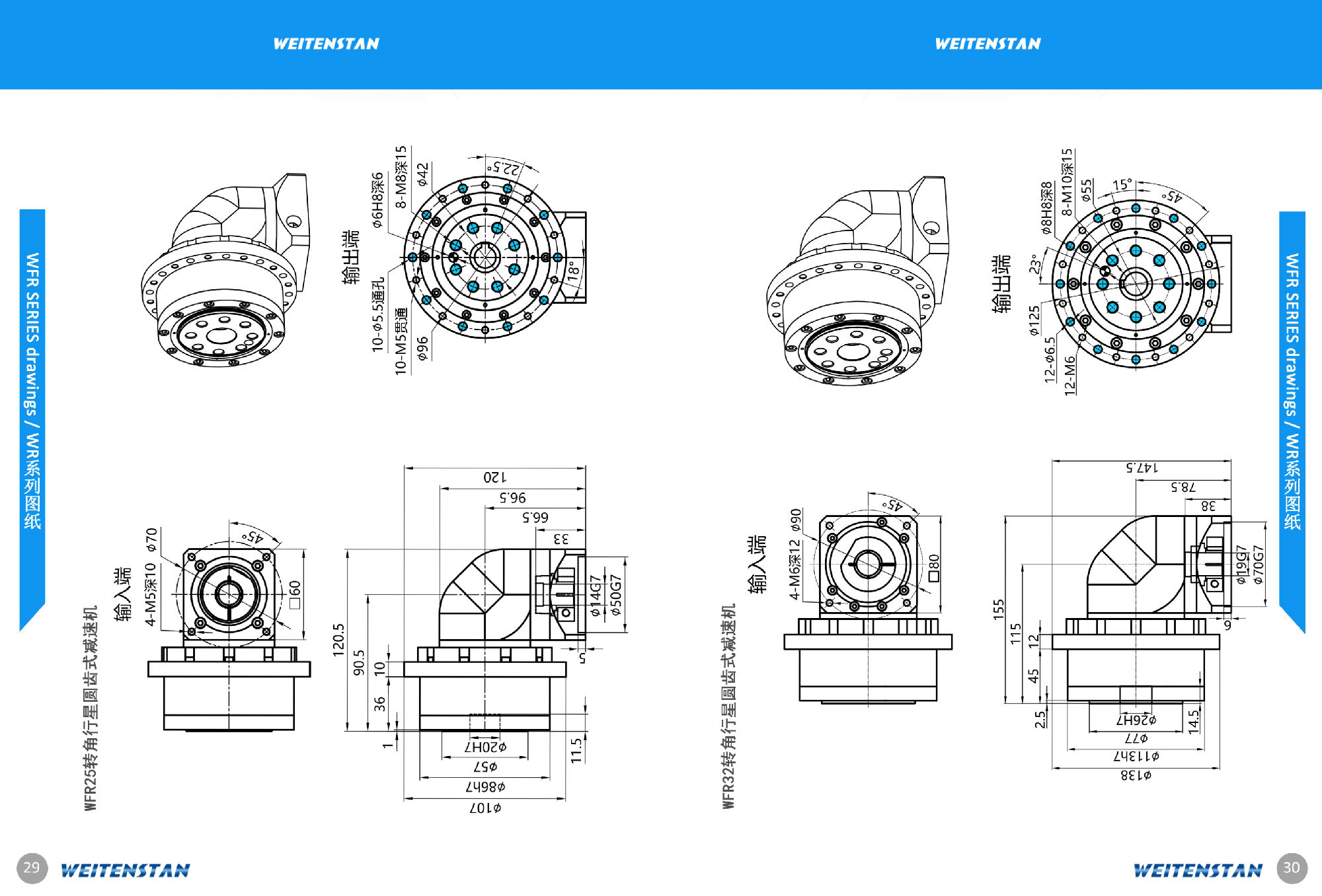 WFR系列時帶法蘭的高精度減速機(jī),其特點(diǎn)時輸入和輸出的角度為90°,可大大節(jié)省安裝空間、模塊化設(shè)計可以通過法蘭安裝電機(jī)和減速機(jī)。