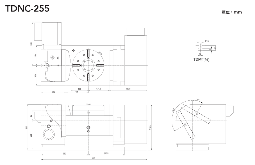 TDNC五軸搖籃式分度盤 CNC數(shù)控分度盤搖籃式五軸結(jié)構(gòu)特點: 1、 采用進口雙導(dǎo)程蝸桿、渦輪,渦輪采用鋁青銅合金,傳動定位精度高; 2、 渦輪大小接近盤面大小,不偷工減料,剛性比同類產(chǎn)品要強30%-50%; 3、 提供高準確和高效能的生產(chǎn); 4、 搖擺結(jié)構(gòu)配置傾斜軸中心線與旋轉(zhuǎn)盤面高度一致,可承受更多的加工扭力和減少機器垂直行程的干涉。